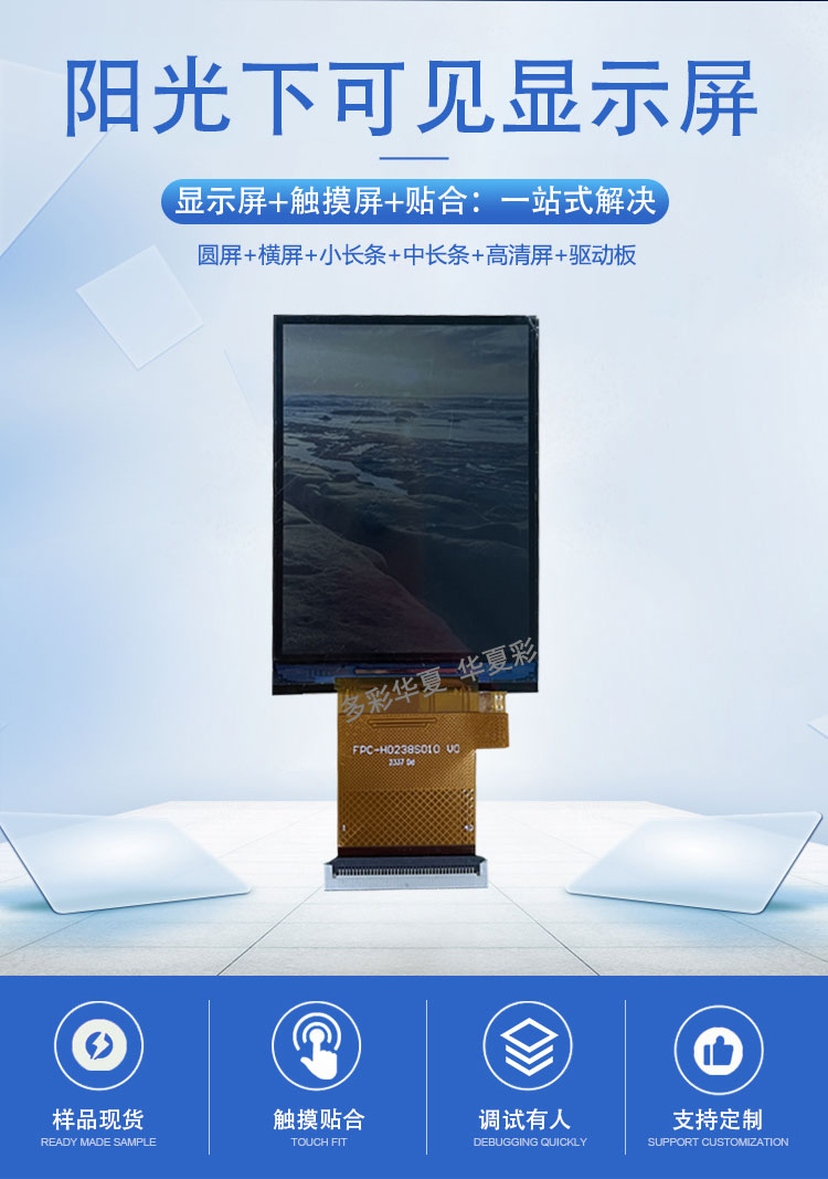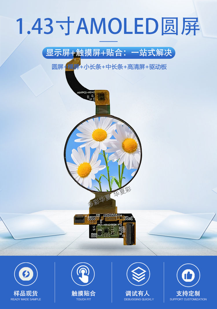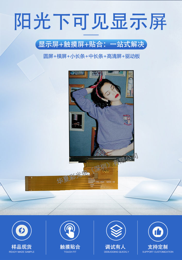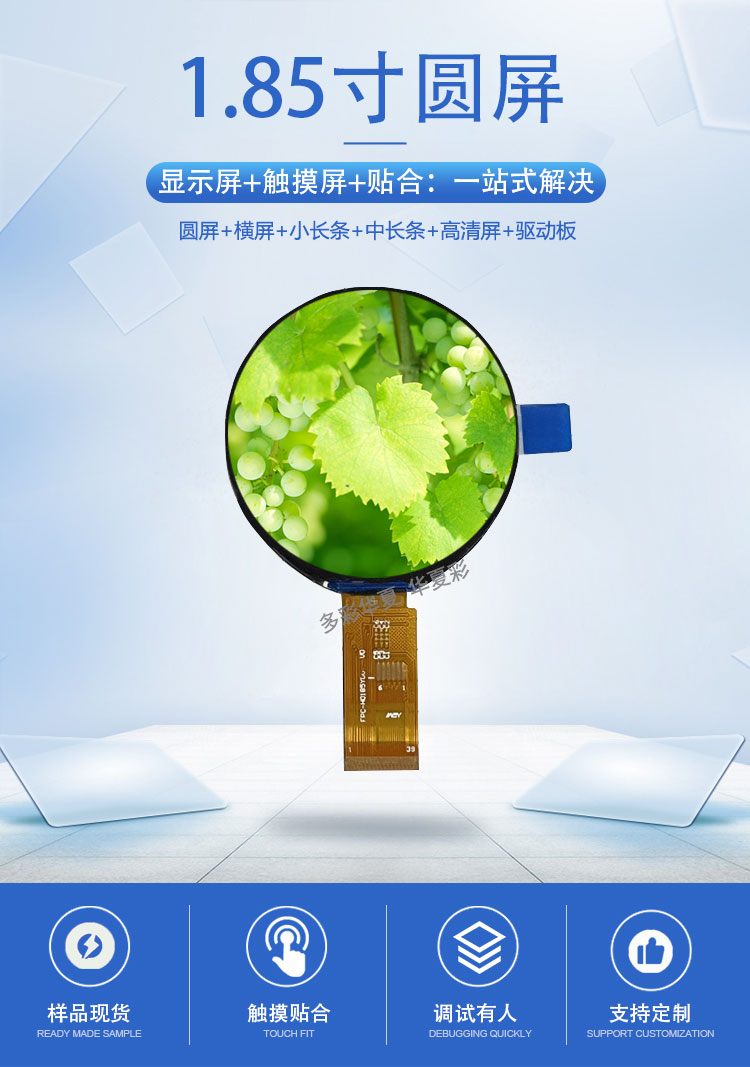我司产品种类丰富,尺寸从0.96-15.6寸,产品系列有:圆屏系列、横屏系列、竖屏系列、AMOLED、阳光下可见...等等,每一个系列都有多款产品。